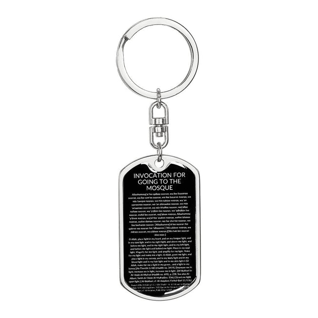 Keychain: INVOCATION FOR GOING TO THE MOSQUE is a beautifully crafted accessory that serves as a daily reminder of faith. This keychain features the heartfelt invocation, asking Allah to place light in various aspects of life, from the heart to the soul.